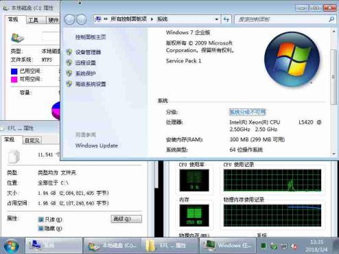 64位的win7精简系统安装完不到2G大小.内存消耗只有250M左右.在300M虚拟机内存下测试非常流畅.